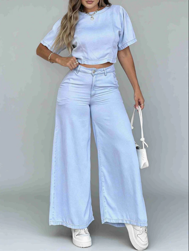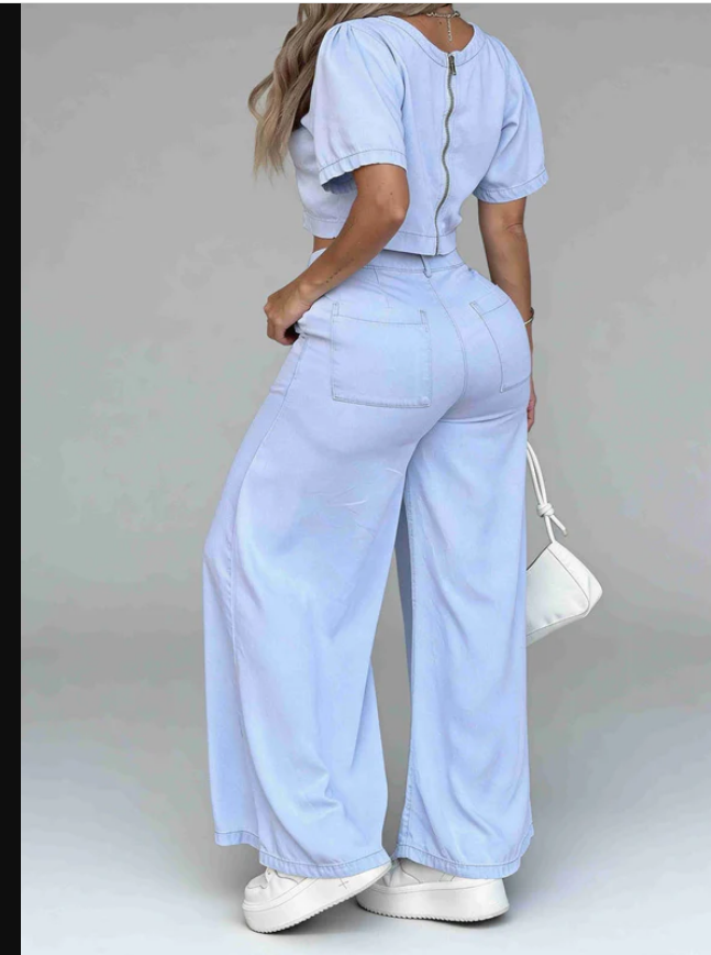 El set mas espectacular de la tienda, con el pantalón, Wide Leg que queda ajustado en la cadera y suelto en piernas y bota recta, te da un estilo de comodidad y versatilidad