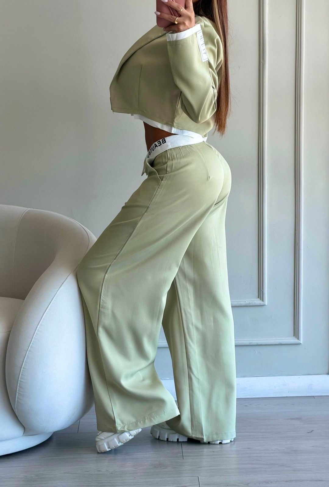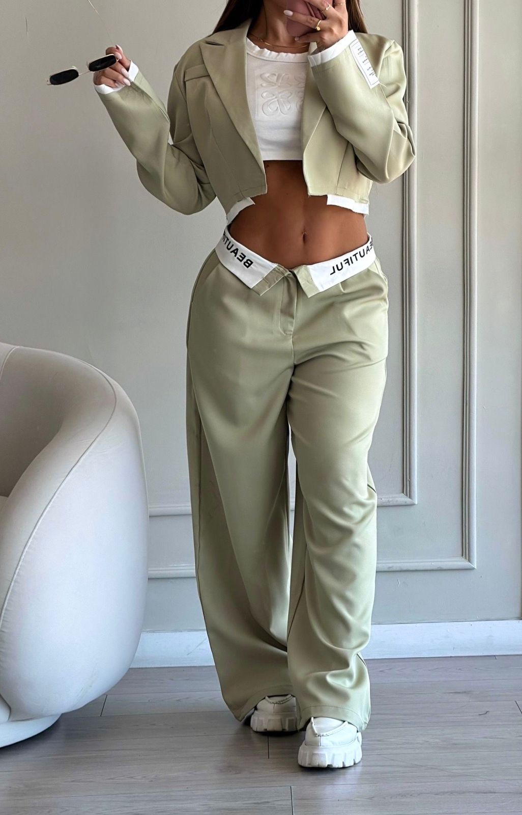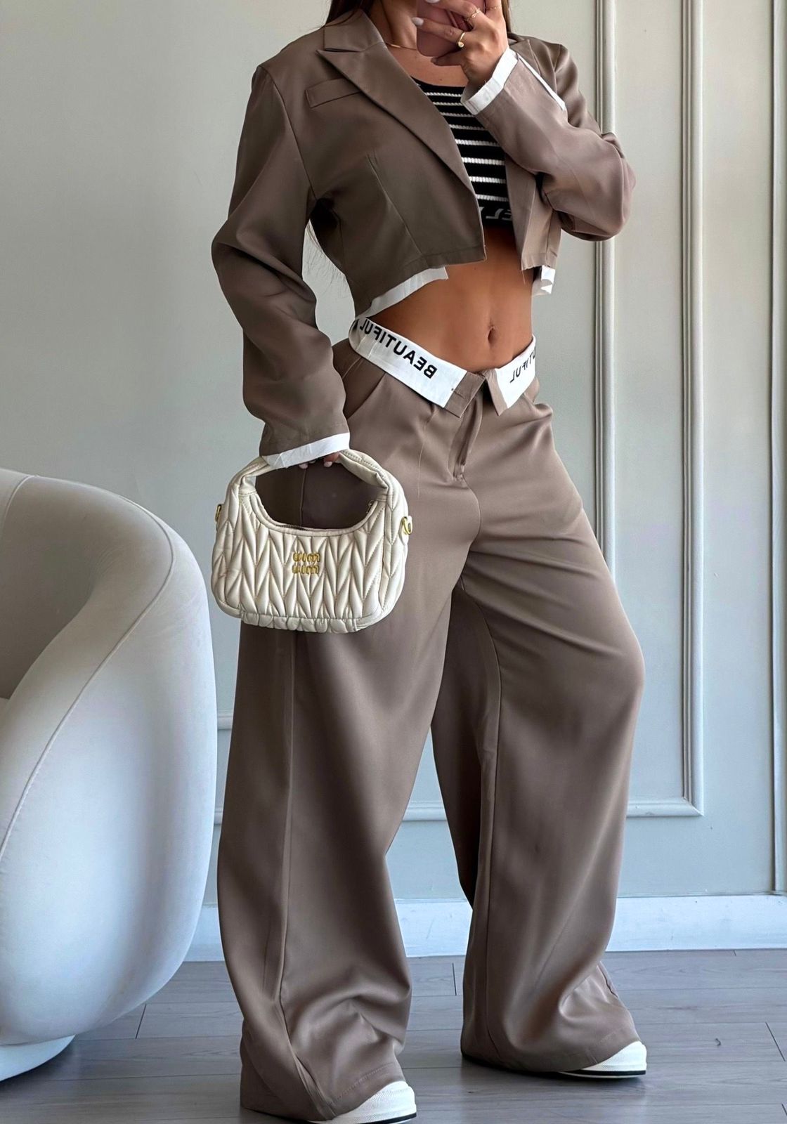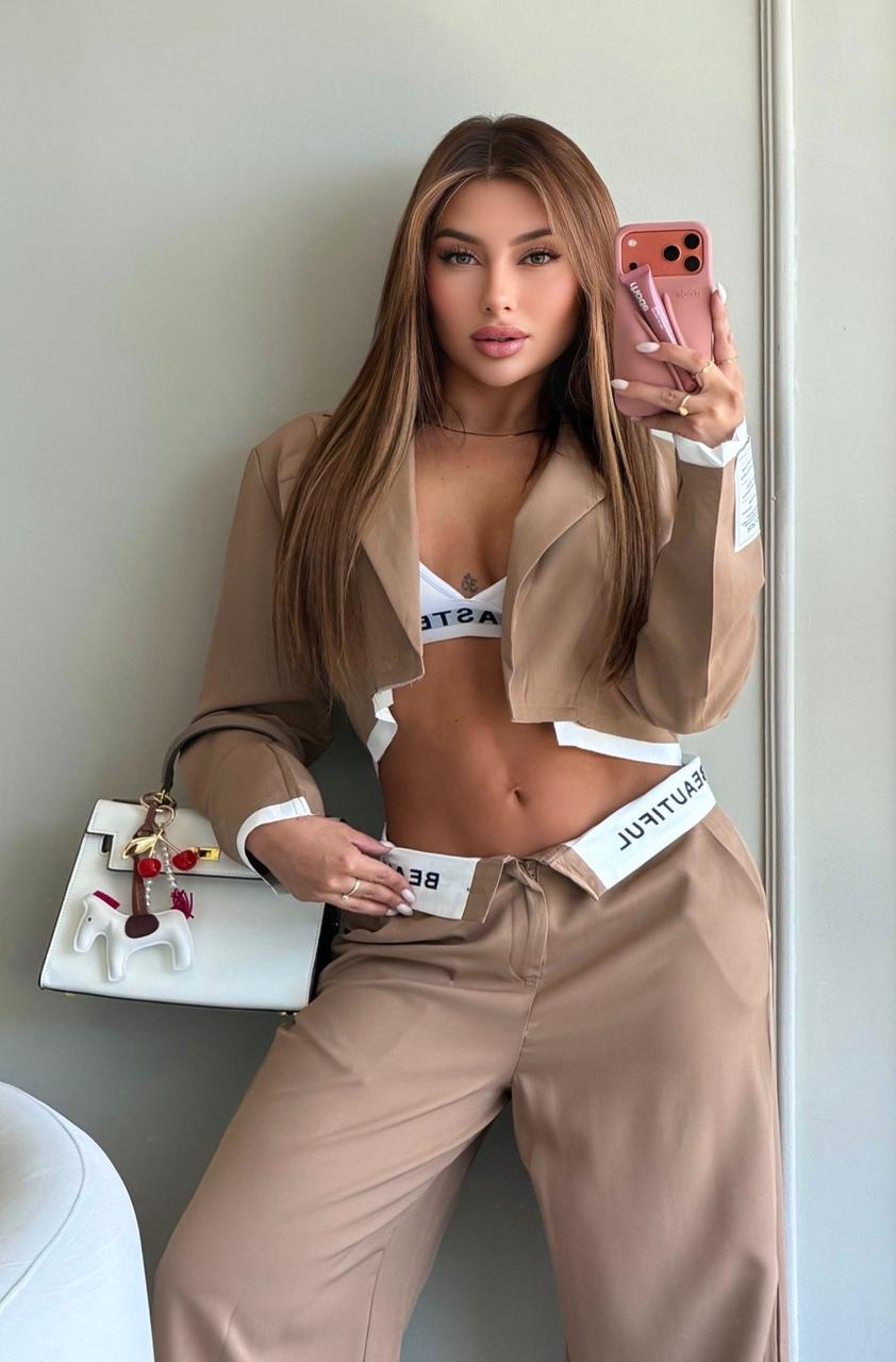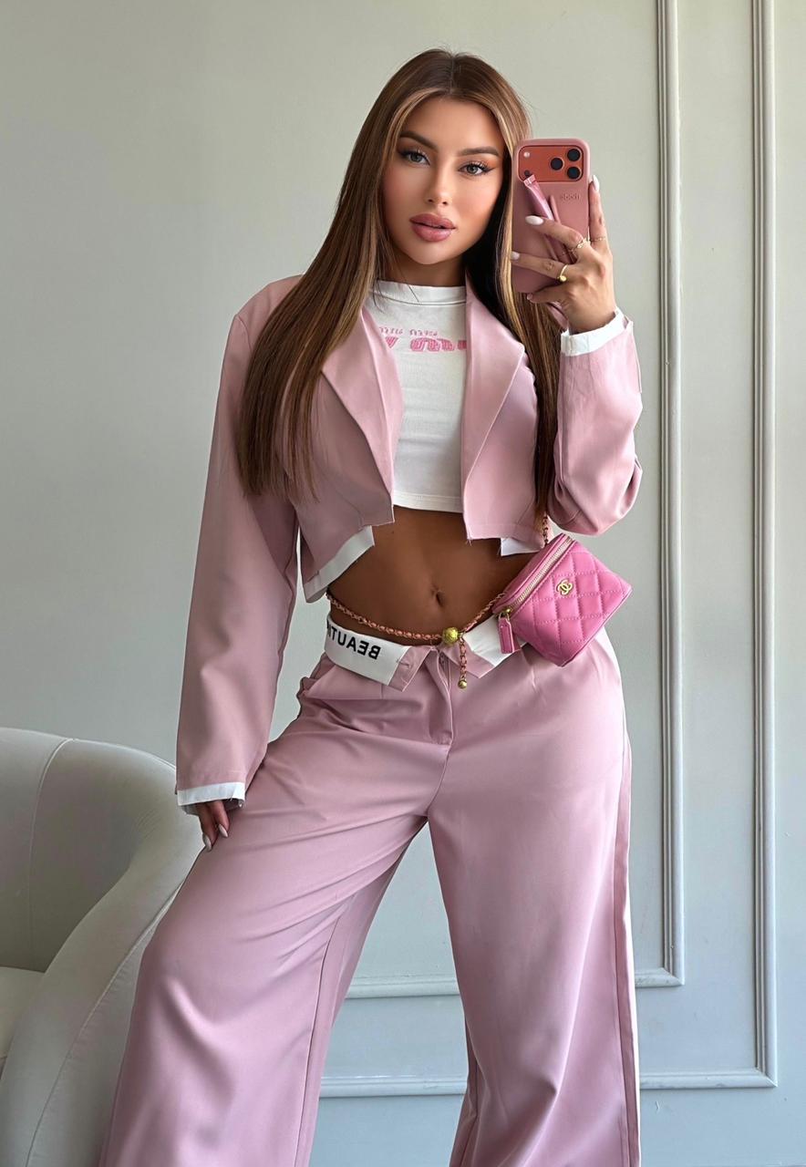 Blazer corto, con pantalon amplio